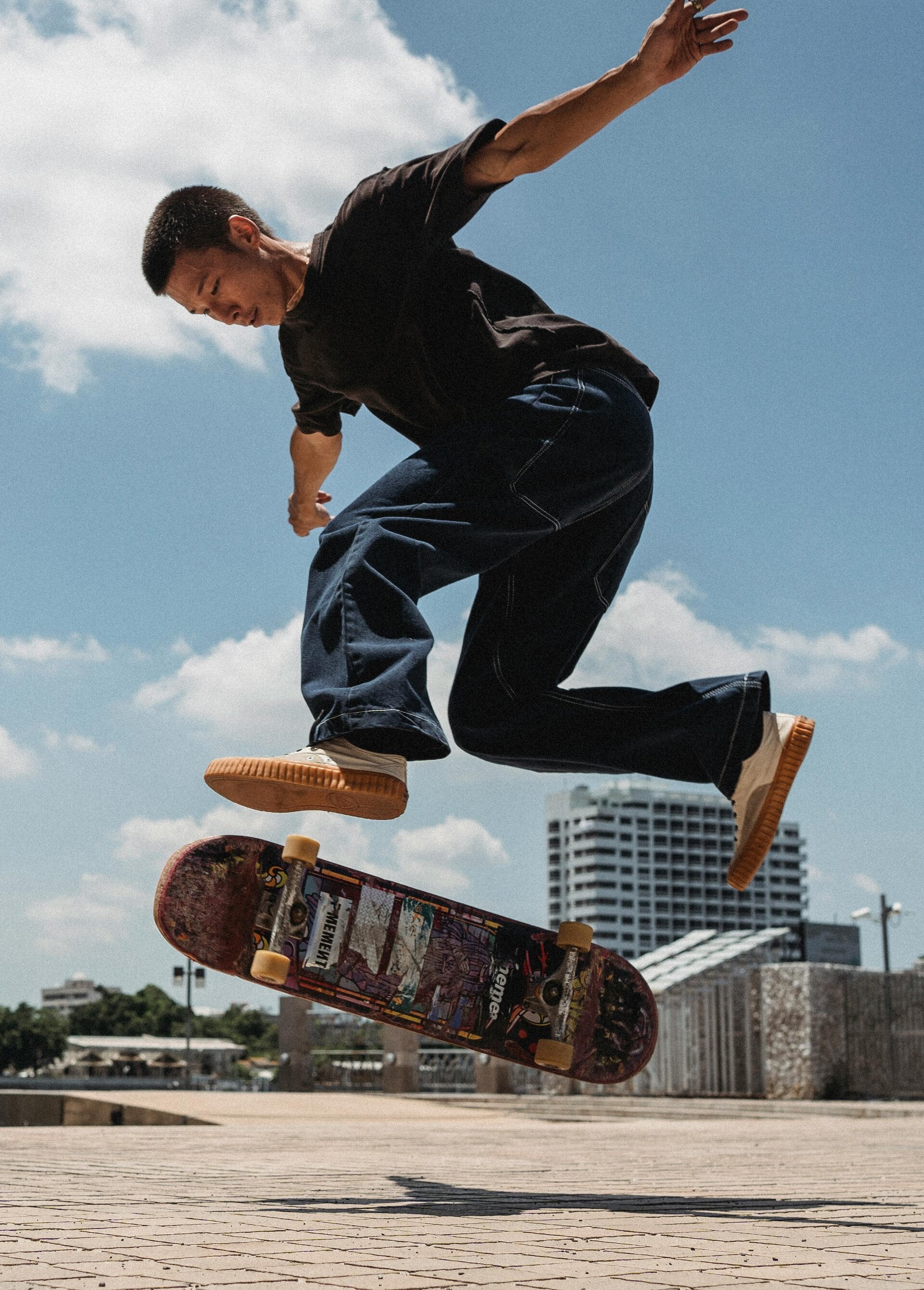 Between skateboards